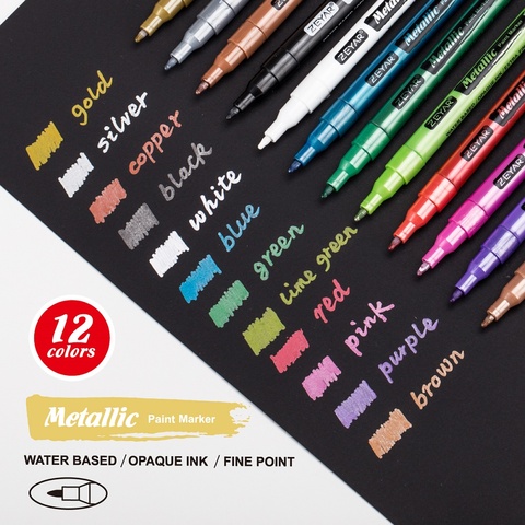 カスタマイズメタリックペイントペン水性ファインポイント12色グリーティングカードに最適アルバムポスタースクラップブック